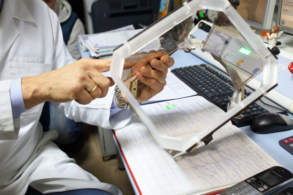 Stereotactic Radiosurgery - Stereotactic frame in hands of doctor